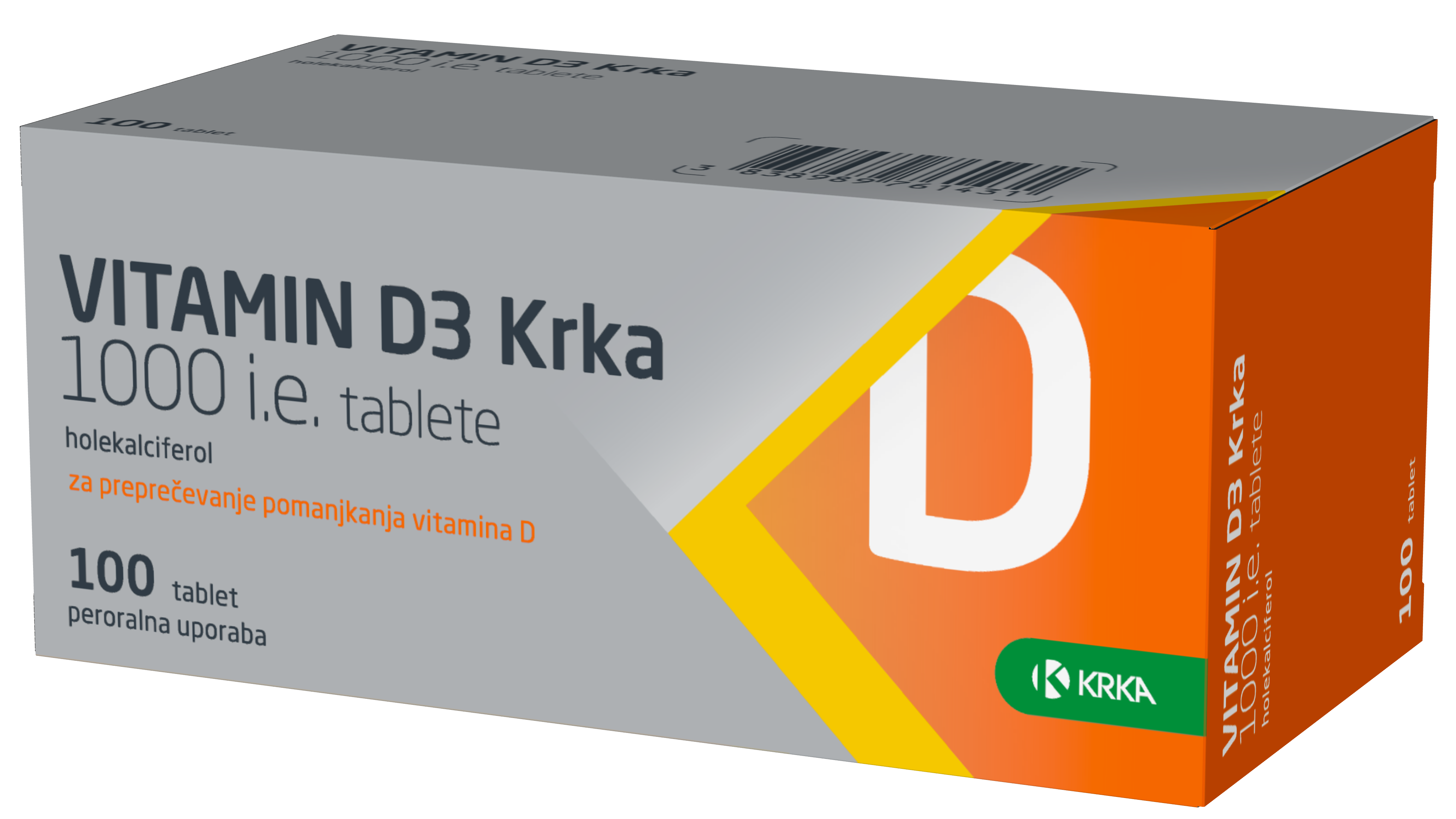 Vitamin D je na voljo v različnih farmacevtskih oblikah. Raziskave potrjujejo, da ljudje najpogosteje uporabljajo tablete in kapsule*. Vitamin D3 Krka, edini kot zdravilo brez recepta, je na voljo v obliki majhne tablete, ki omogočajo enostavno jemanje (zaužije se z nekaj vode). Ena tableta vsebuje 1000 ME holekalciferola. Primeren je za odrasle, mladostnike in otroke od 6. leta dalje. Je izredno stabilen izdelek in ustrezen odmerek vitamina D3 zagotavlja v celotnem obdobju uporabnosti (2 leti).
