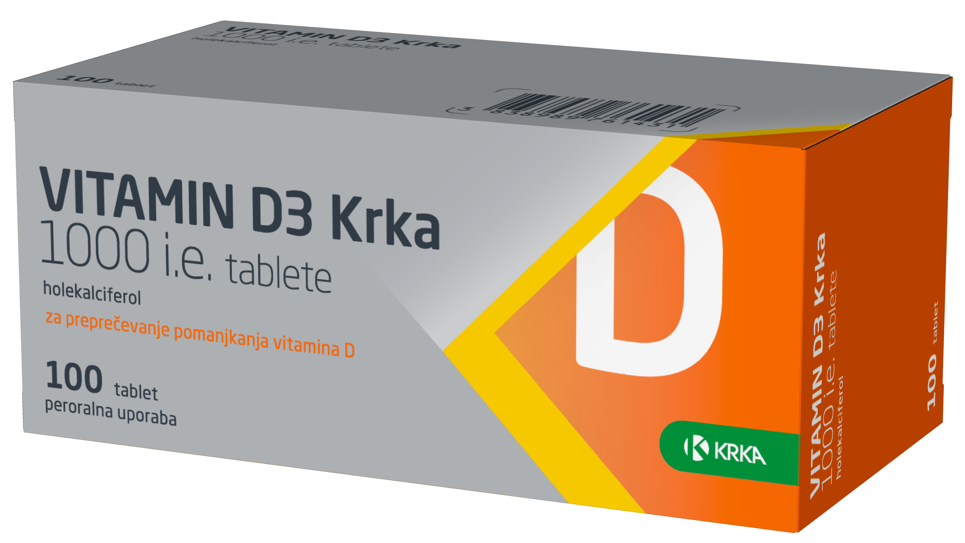 Vitamin D je na voljo v različnih farmacevtskih oblikah. Raziskave potrjujejo, da ljudje najpogosteje uporabljajo tablete in kapsule*. Vitamin D3 Krka, edini kot zdravilo brez recepta, je na voljo v obliki majhne tablete, ki omogočajo enostavno jemanje (zaužije se z nekaj vode). Ena tableta vsebuje 1000 ME holekalciferola. Primeren je za odrasle, mladostnike in otroke od 6. leta dalje. Je izredno stabilen izdelek in ustrezen odmerek vitamina D3 zagotavlja v celotnem obdobju uporabnosti (2 leti).